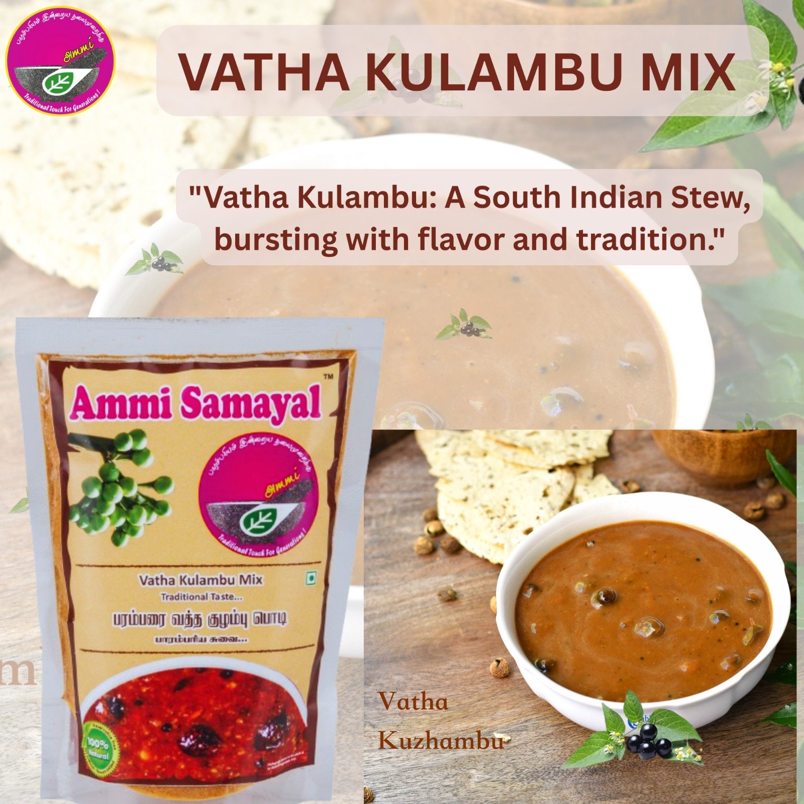 Vathakulambu powder is a traditional combination of spices as advised by granny which is not only tasty but healthy and part of traditional Indian cuisine.